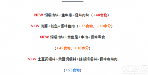 NEW 饲喂肉块+生牛排=怪味肉块( +40食物 )