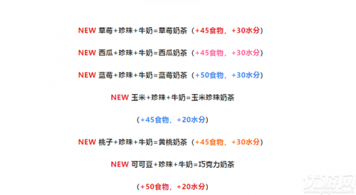 草莓+牛奶=草莓牛奶 (+30食物,+40水分 )
