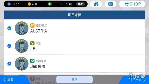 球探组合最多一次性选中三个,而且是不同类别的,比如不能同时选中“地面传球”和“空中传球”。