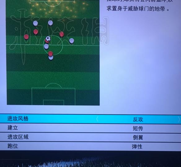 首先是把一个默认的影锋(即SS),设置为中锋(CF)。因为我观察下来,SS的跑位基本等于一个攻击型中场,进攻/反击时候压上不够彻底,对中场的帮助也不算明显。因为中场组织时候,4个人还是5个人,其实差别不大。但是反击时候,1个人和2个人,这个差距就大了去了,多一个接应点,可以多出无限可能,这个应该不需要我解释了。