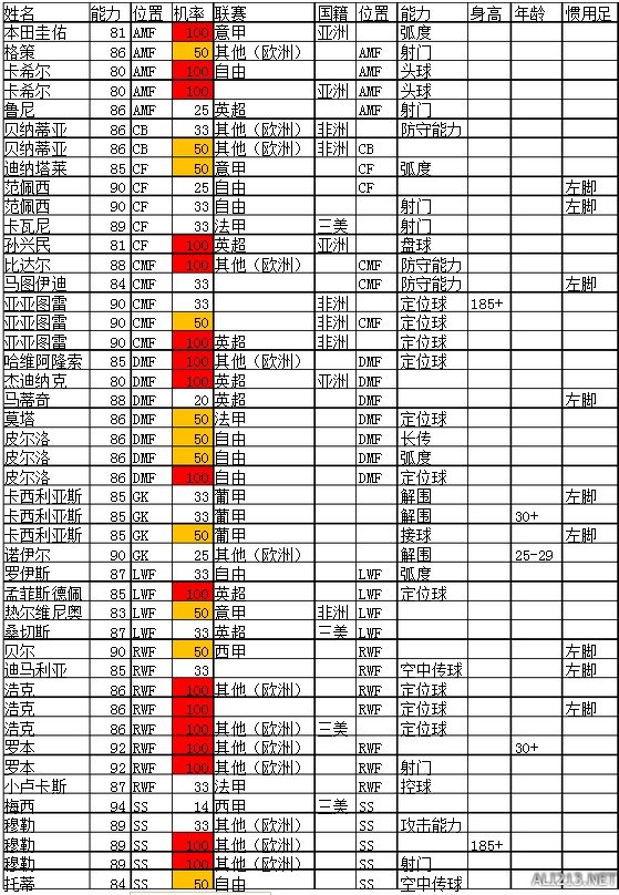 Benatia: CB + 非洲国籍+欧洲其它联赛