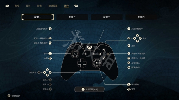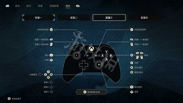 手柄键位有四种配置方案,选好后长按菜单键确认。