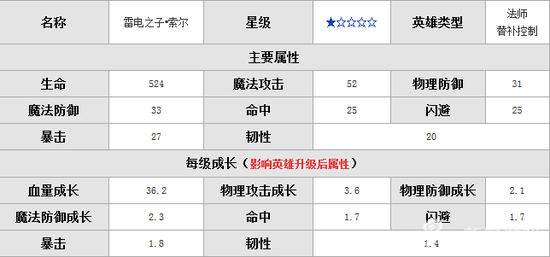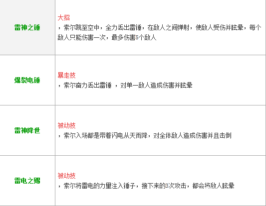 索尔在开服活动和金卡活动中可以获得,基本算是系统送给玩家的。官方给索尔的定位是替补控制,由于索尔平砍的攻击距离较短,放在边路位置比较好,所谓的控制就是指其所有的技能都带有眩晕的特效,默默的在边路攒怒气,然后一波大招带眩晕,索尔在猥琐流的道路上将会这么一直的走下去。