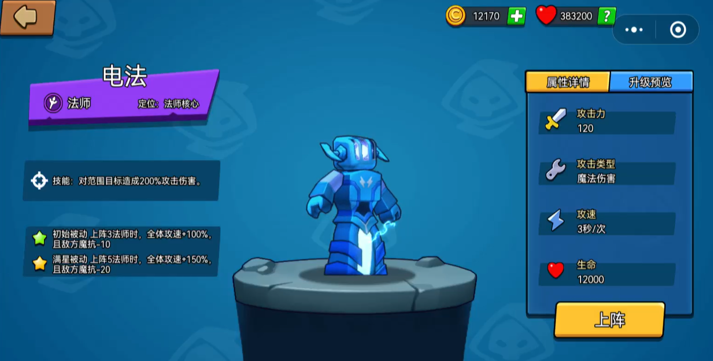 如果升到满星的情况,上阵5个法师,能够为全体队友增加150%的攻速,并且能够降低敌方阵容20点的魔抗。