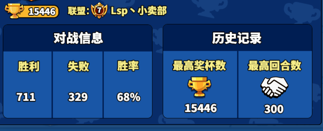此次分析的一位玩家拥有15446杯的战绩,对战的胜率高达68%,最高的回合数达到了300回合。