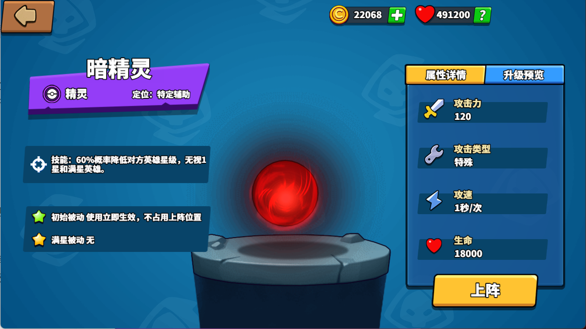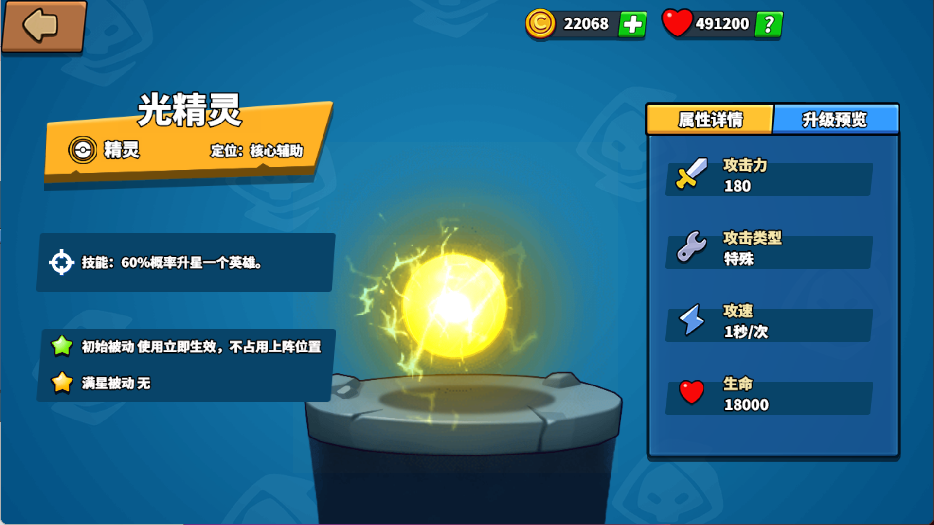 光精灵的技能很简单,上场后有概率能够提升卡组中的一个英雄升星,概率高达60%。