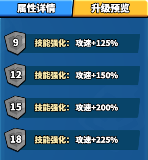 那么同样,随着魔精灵等级的提升,对应的技能也会得到强化,比如说升到3级的时候,攻速会提升到75%;等到6级的时候,能够提升100%;升到15级的时候,能够提升200%;升到18级,能够提升到225%。
