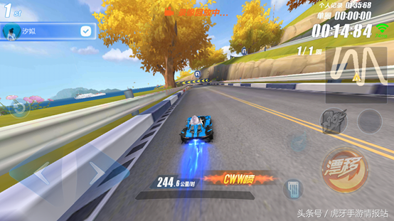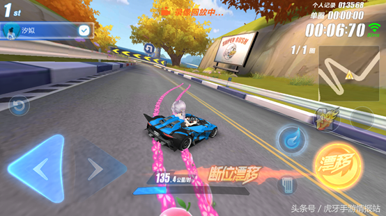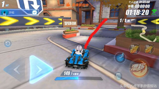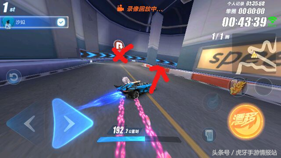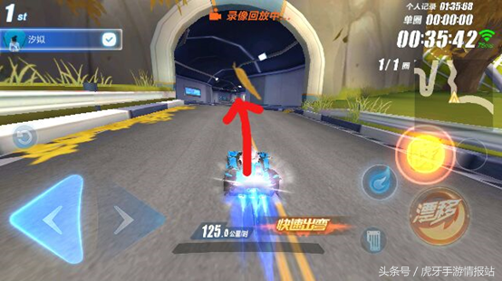 超级起步接一个断位漂移,提速并且集一点氮气。下去的第一个弯道我们使用断位漂移,与之前集的氮气,正好可以集满一管氮气。