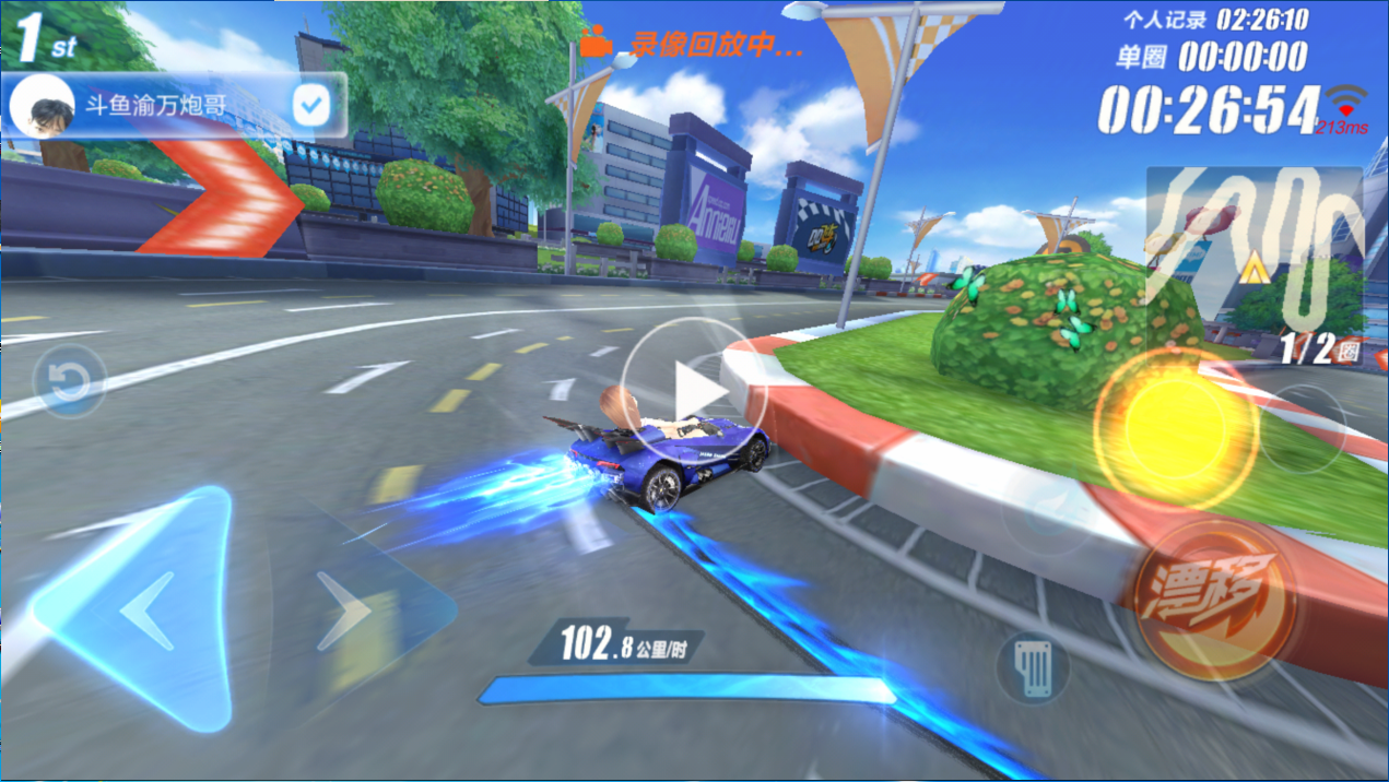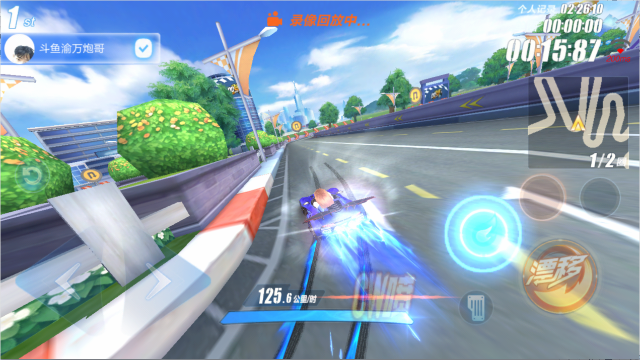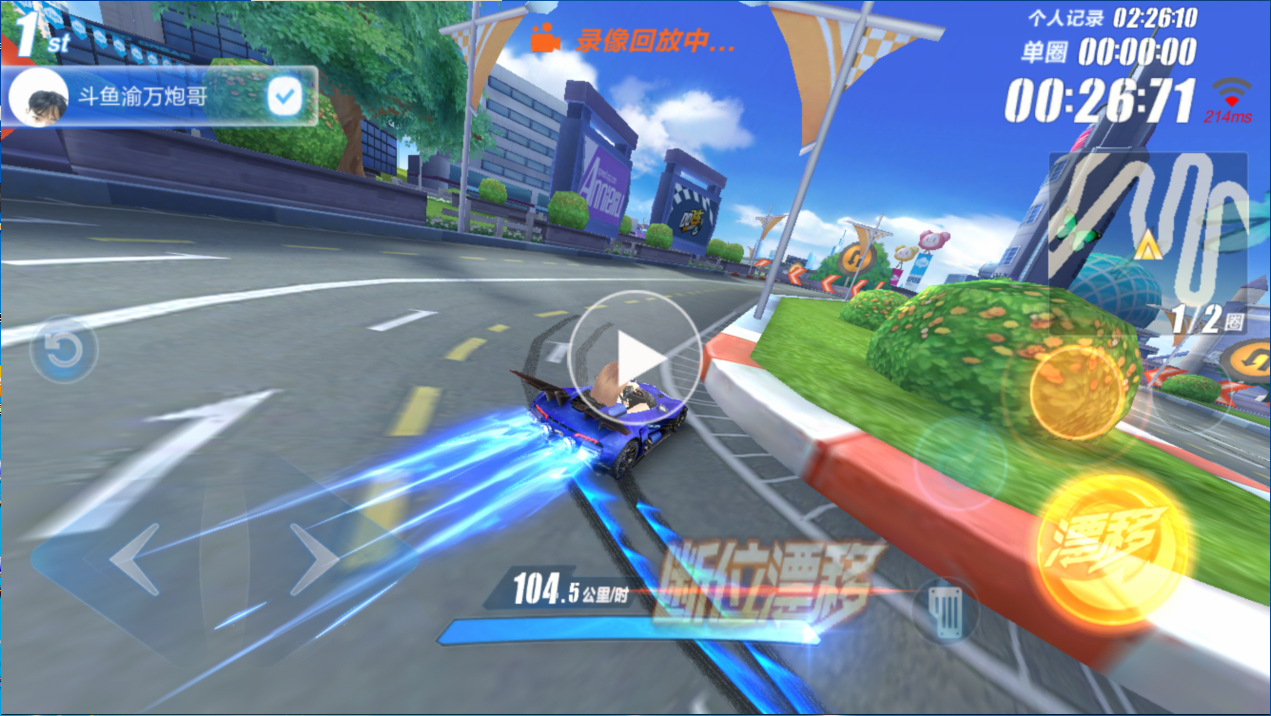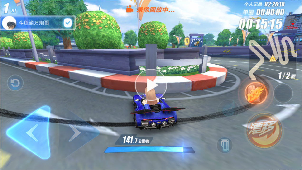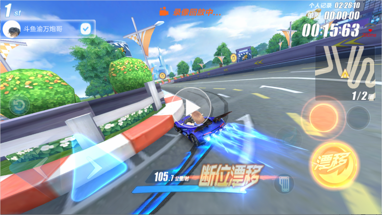 第二步,这里是由于过于贴墙了,松开了漂移键按了方向键调整位置,这个可以学,但是可以先不管!在正常漂移之后,我们习惯的立马接上断位漂移了,但是这里不是,在接断位漂移之前,请快速的把手指移到氮气上,释放氮气后立马移回漂移来,接上断位的操作!(手速够快的可以用点,点完立马回来做断位的动作!)