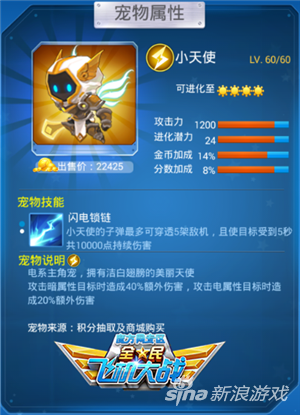 闪电锁链:小天使的子弹最多可穿透5架敌机,且使目标受到5秒共10000点持续伤害;