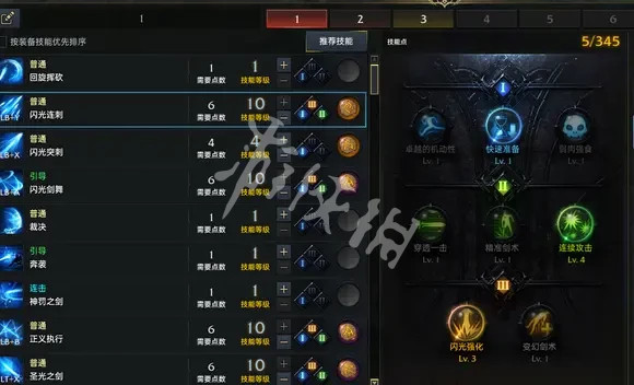 每个技能的介绍:闪光突刺。位移加护盾技能。建议点到7级,我目前技能点只有345,。所以只点到4级。增加位移。7级选择护盾。提升生存能力。