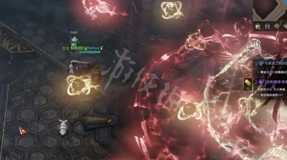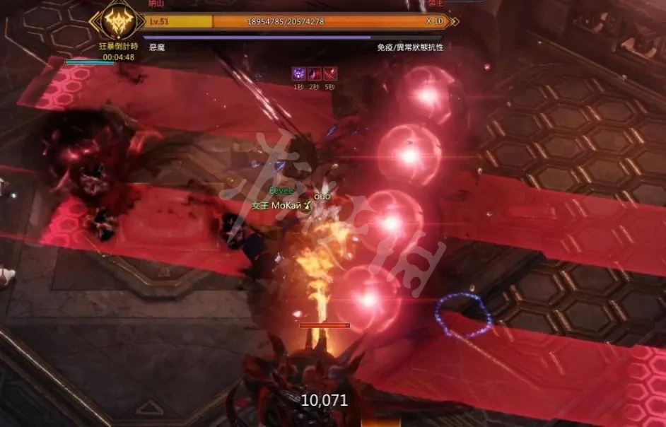 13、然后刚刚的红色球到最外面之后会回到王身上,而你的金色圈可以叠在红色球把红色球消除掉,需要在红色球回到王身上之前把它消除掉如果太多红色球回到王身上就会杀死所有人,整个过程就挺折磨的XD 打那么久打到剩下X10条血,结果这个看似很简单的机制有其中一个队友吃到红球基本上就要重新打过了。