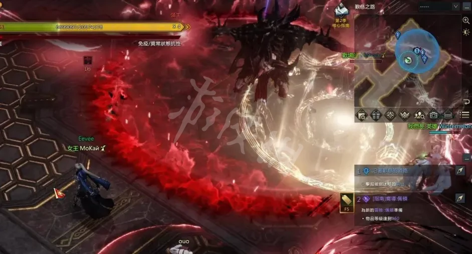 10、第二种是王突然向上飞消失再随机跳到其中一个人身上,如果没有躲开这招王会捉住跳中的人把他吸干吸的时候所有攻击都无法伤到王,王吸收完她脚下会出小红圈近攻不要接近等红圈消失远攻继续输出,应对的方法是当你留意到王突然向上飞消失不要站在原地发呆保持走来走去就可以。