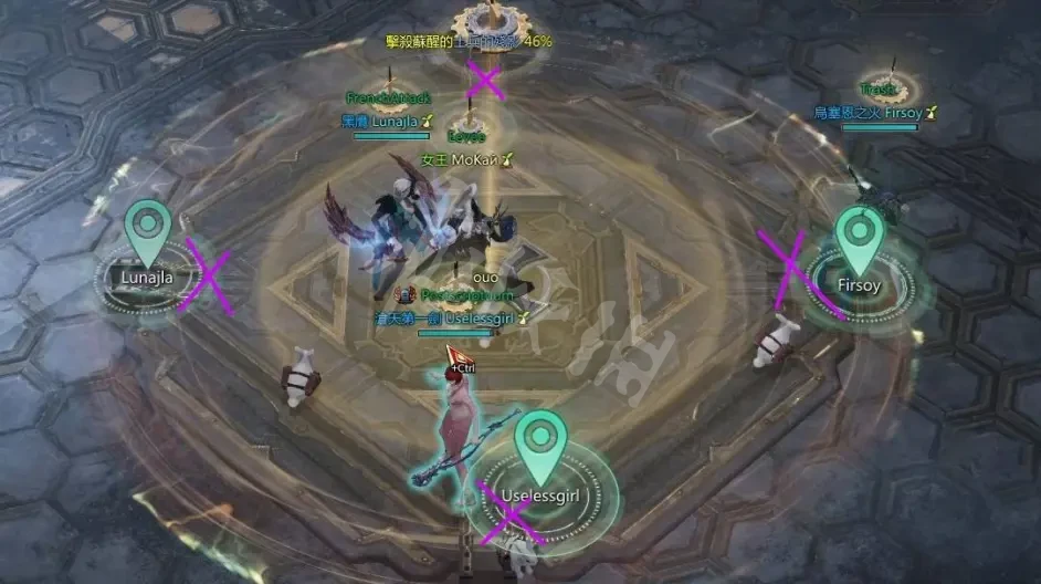 8、进入到第二关有时候有些人会提前分配好每个人处理的方向,他们会用Ctrl 滑鼠左键点地下表明自己的方向,当然不这样做也不怎么样,只是他们想要确认进入机制的时候没有那么混乱。