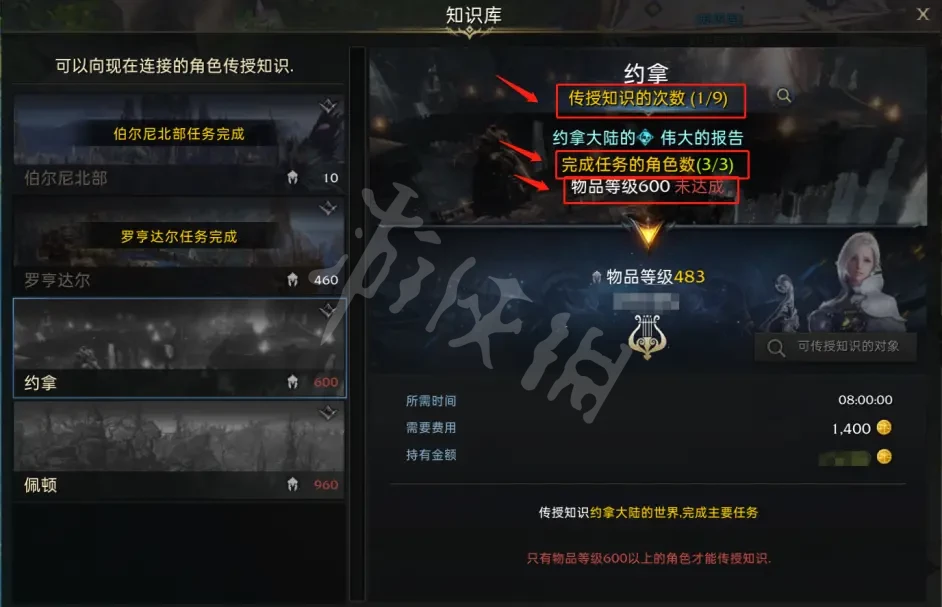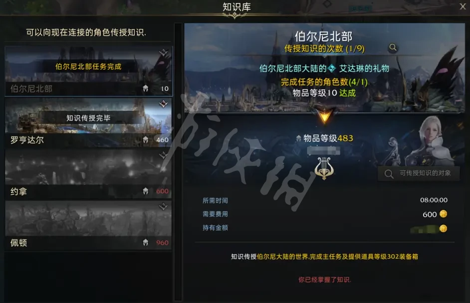 而一个大陆的主线需要跑1-2小时才能完成,可以说相当头疼,为了限制游戏平衡,这个设定本身也还算合理,于是为了减少玩家的重复精力投入,游戏中的家园开放了知识传授,即直升系统。