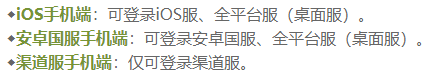 在这次的全平台公测中,原本伴随桌面版新开的“桌面服”将正式更名为“全平台服”,还和以前一样,全平台服为全新的独立服务器,数据与现有的安卓国服IOS服等服务器之间相互独立,不过全平台服可以在现有的国服手机客户端(安卓国服、IOS服,不包括渠道服)登录并且游戏,手机上不需要下载单独的客户端。