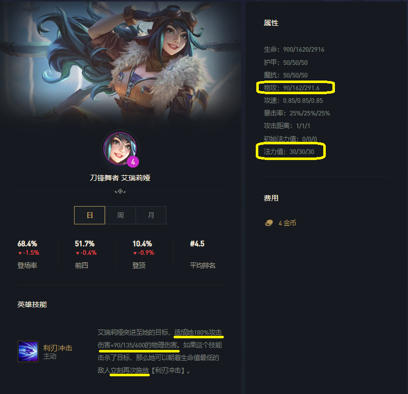 艾瑞莉娅纯物攻输出棋子,技能可暴击。比较建议出装:无尽+轻语/巨杀+水银。