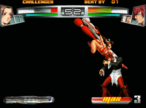 发展到《NEOGEO竞技场》时期,她展现出来的武学似乎更上一层楼。在制住对手之后可以释放出最强奥义: