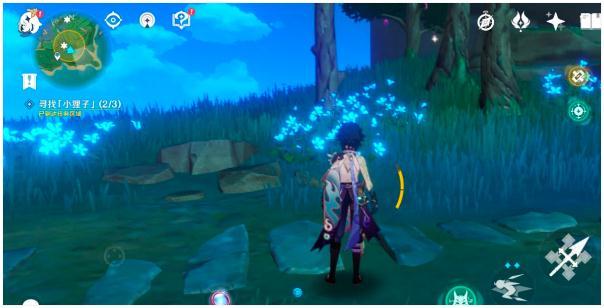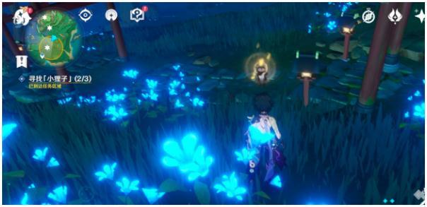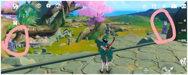 12.我们弄好樱花树,从神瞳所在的那边出来向左转,走到下图所示位置触发狸猫任务,顺着指引走,找到五百藏