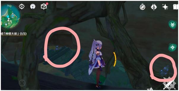 11.继续走流程,在这个位置找到樱树,下图左边有个山洞可以进去,记得取神瞳,
