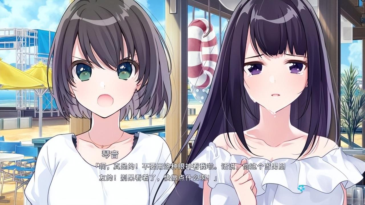 尽管作为一个距离“青夏”这个词稍微遥远的玩家,我上面这段对于剧情的描述稍显油腻,但游戏本身还是非常清爽的,蓝色为主基调的画面和海边的美丽小城让人心旷神怡。妹子们的装扮和发色也是那个纯真年代的朴素学生妹,没有辣么多奇奇怪怪的装饰和发色。配之以的温柔宁静的钢琴曲,确实非常有夏天和青春的感觉。这种感觉也不仅仅体现在画风和配色,还体现在比如补充了很多女角色视角的故事来展现恋人关系的青涩感,还有“心跳声”的音效特写(一般萌拔的背景音特写是啥懂得都懂)。