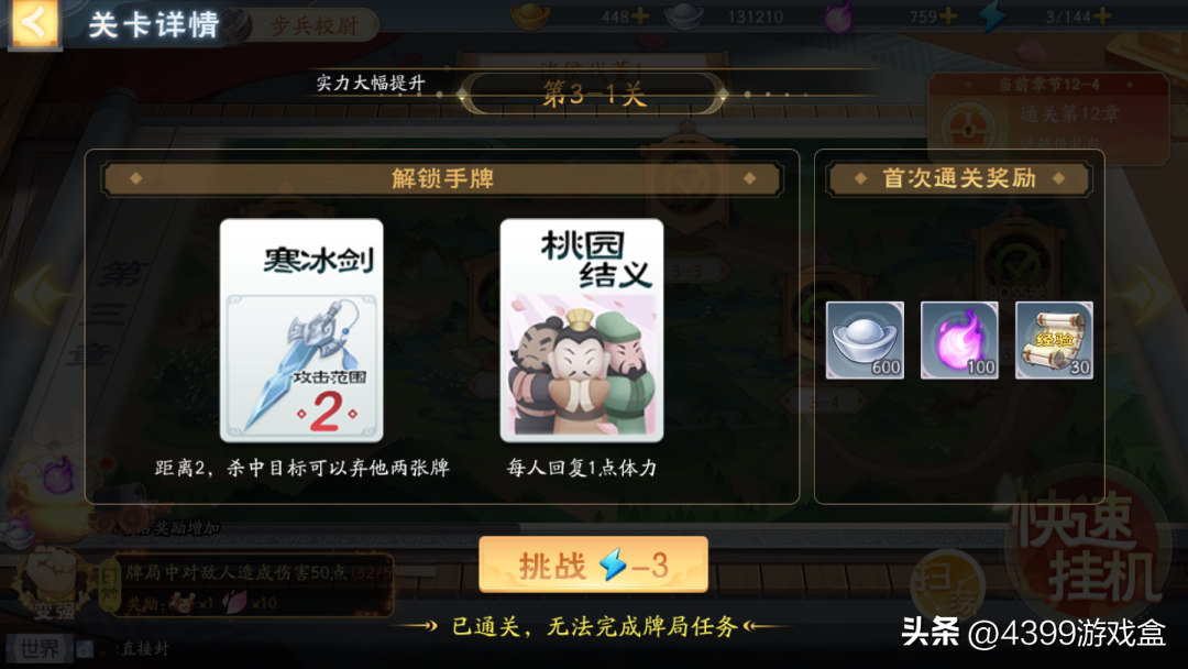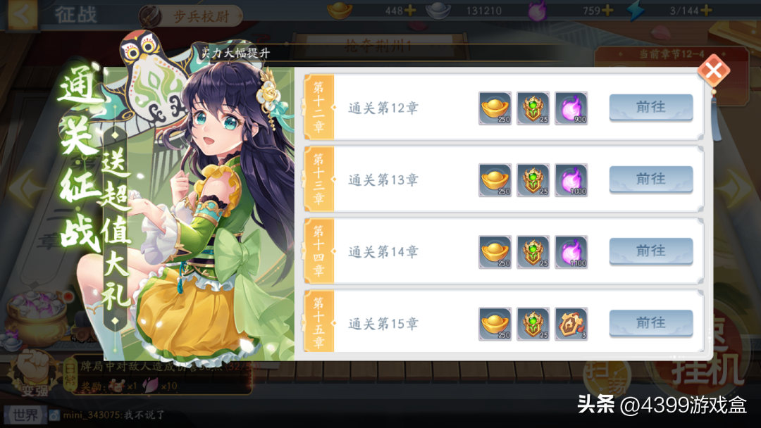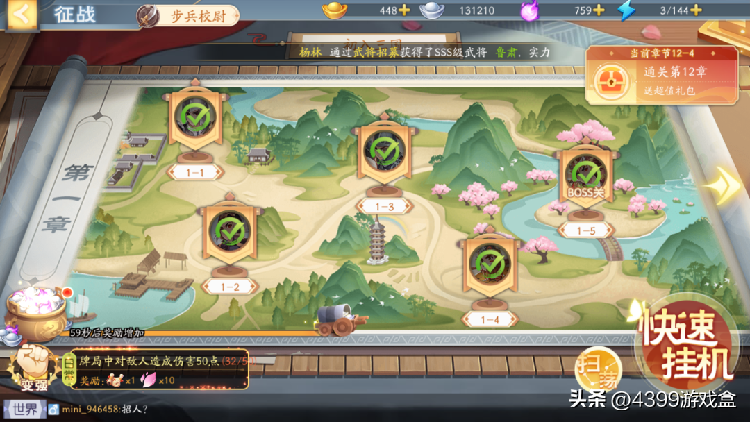 除了小型关卡的奖励之外,每通关一个大关卡后都能拿到元宝或是招募令等高级奖励。