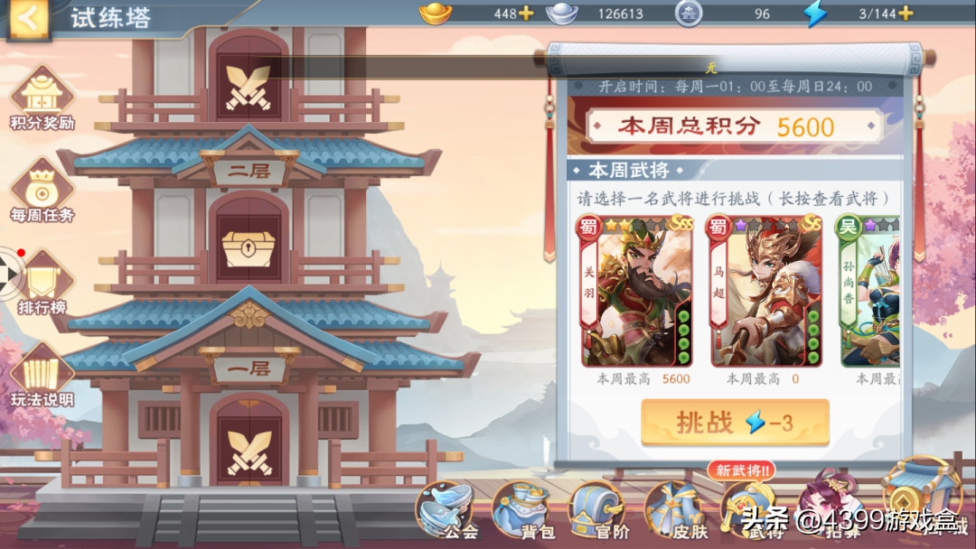 除闯关模式外,PVE中还有每日活动试练塔,玩家可以通过爬塔赚取积分用来兑换招募令等道具;