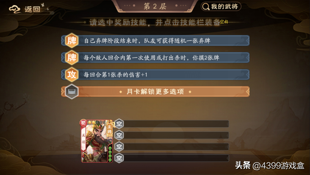 在攻略一定层数后玩家可以获得额外的AI做队友助力,也有机会选择额外的被动技能强化武将。