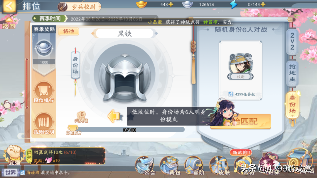 由于游戏目前还不算火,近期排位赛上分会比较轻松,很少有遇到被对面超模武将碾压的情况;