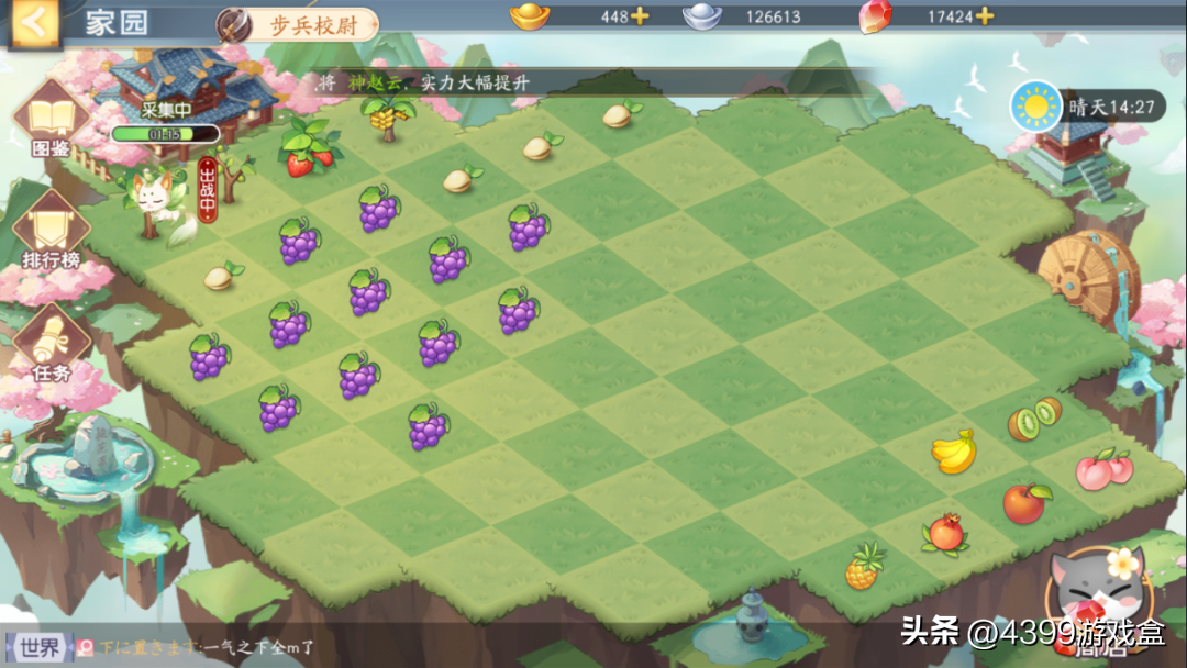 除了打牌玩法之外,游戏中还添加了“家园”功能;玩家可以在家园里种水果和养宠物,慢慢收取一种叫做灵晶的奖励,可兑换皮肤、招募令等道具。