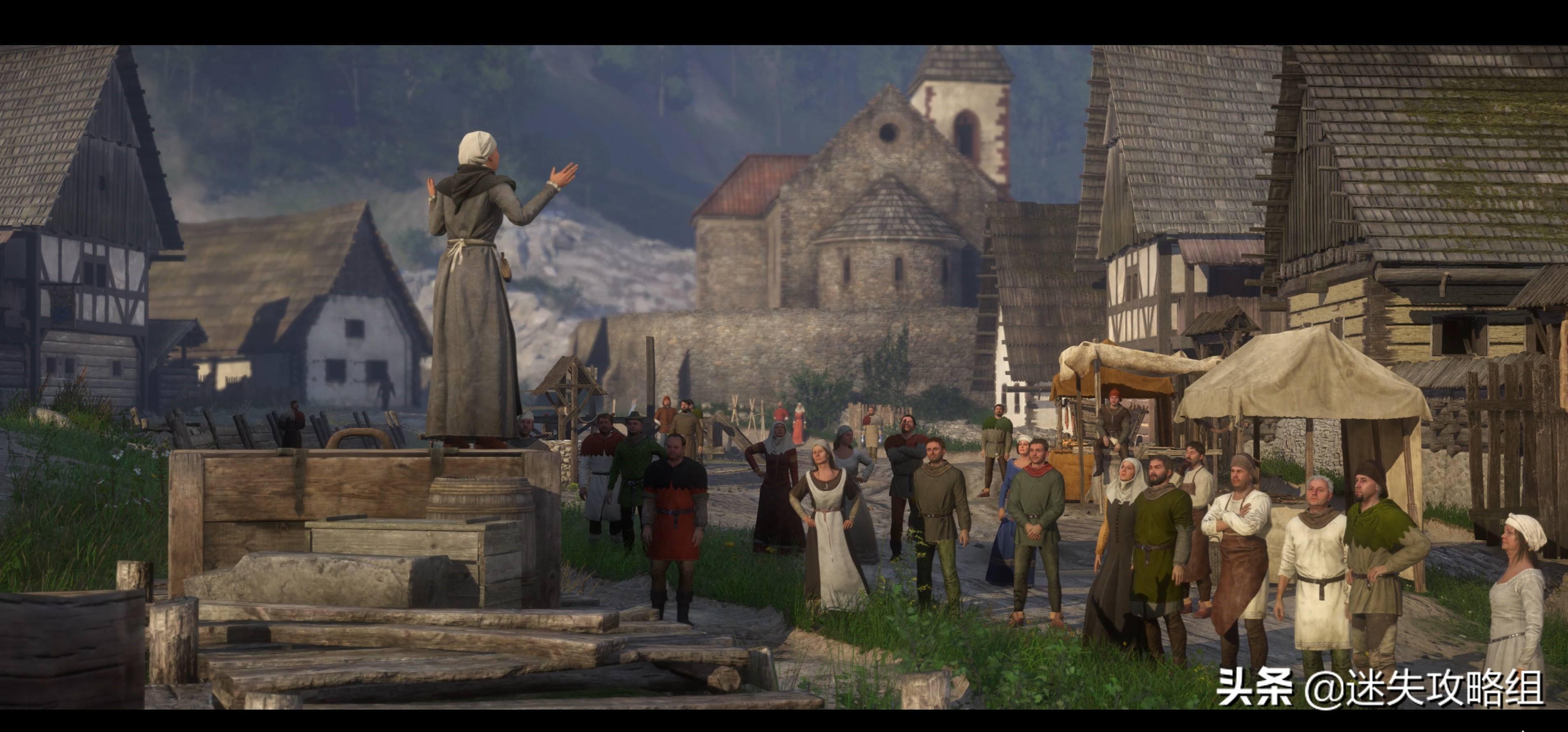 斑驳的树影照在篱笆上,酒馆里侃侃而谈的村民、集市上吆喝的商贩;怡人的清风和高悬的白云,伴随着舒缓的音乐,让人产生忘乎所以的沉醉之感……好一副安然闲适的中世纪生活景观!
