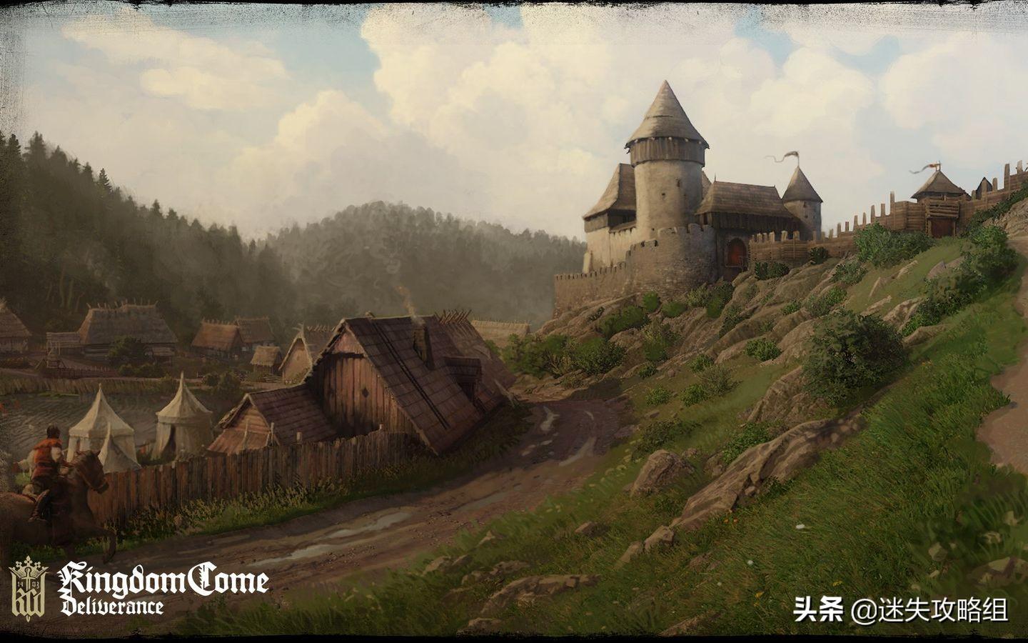 游戏开始,玩家扮演的亨利,于小农舍的床榻上慵懒的醒来。与母亲对话后,我们走出小屋;映入眼帘的,是婆娑起舞的大树、碧蓝如洗的天空;错落有致的小村落,阡陌交通、人来人往;映衬着一旁高大的领主城堡。