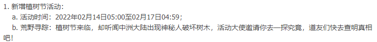 第一个更新就是植树节的活动:植树节来临,却听闻中洲大陆出现神秘人破坏树木,活动大使邀请你去一探究竟。这应该是一个例常的节日更新。