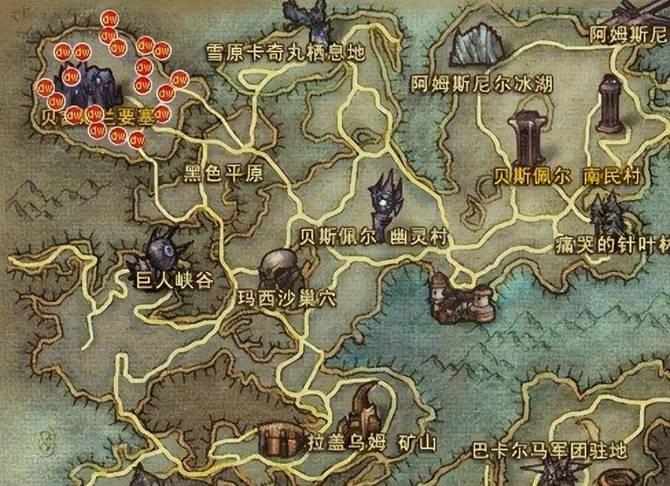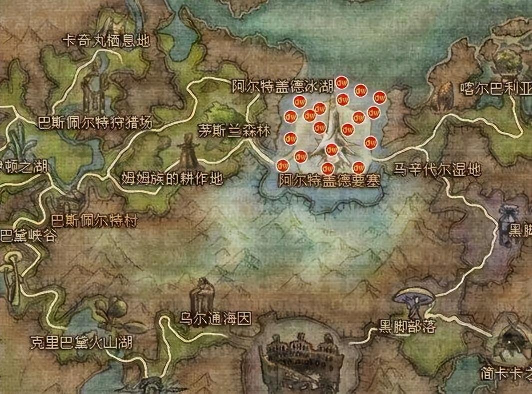 采集地点主要分布在地图中的阿尔特盖德要塞周围。