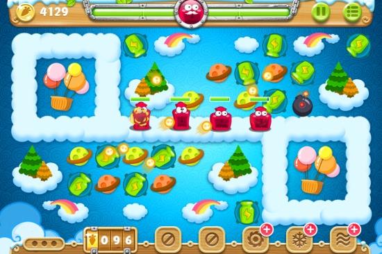 第56关额外任务有(1)使用瓶子炮塔消灭5个怪物;(2)使用玩具飞机消灭1个怪物;(3)在20秒内清除2个气球。游戏开始后快速找到炸弹是清除所有道具的关键,地图中一些星球道具背后就隐藏有炸弹,可以先考虑清除其中一个星球道具,找出炸弹即可清除全部道具。当然玩家也可以先在地图中空白处多布局瓶子塔,便于尽早完成第一个额外任务。
