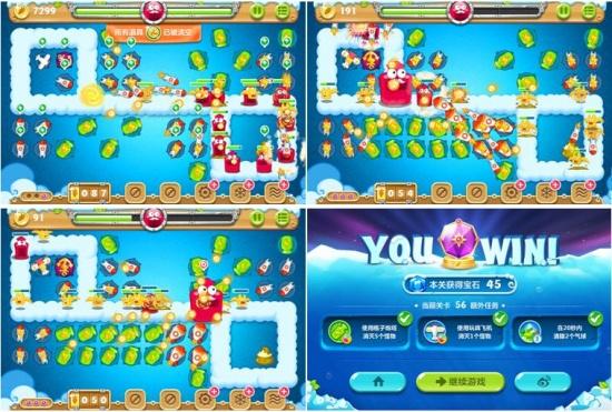 本次《保卫萝卜2》第55关和第56关各有特点,第55关摧毁怪物堡垒是过关的关键,第56关快速找到炸弹是获胜的关键,都比较注重游戏策略性。同样这两关都有指定炮塔消灭怪物的任务,玩家需要灵活运用这些炮塔,方可完成任务。