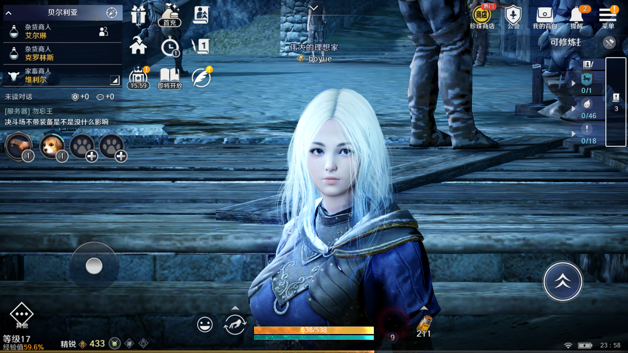 目前玩的还比较初期,没体验到端游中办厂,野外圈地种植,房屋系统的玩法,基本都在跑主线了,boyue感觉这些自由玩法提早开放会更好些,当然,希望不是直接无了,那就忧伤了。