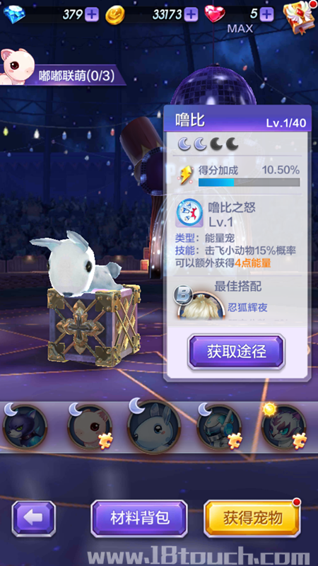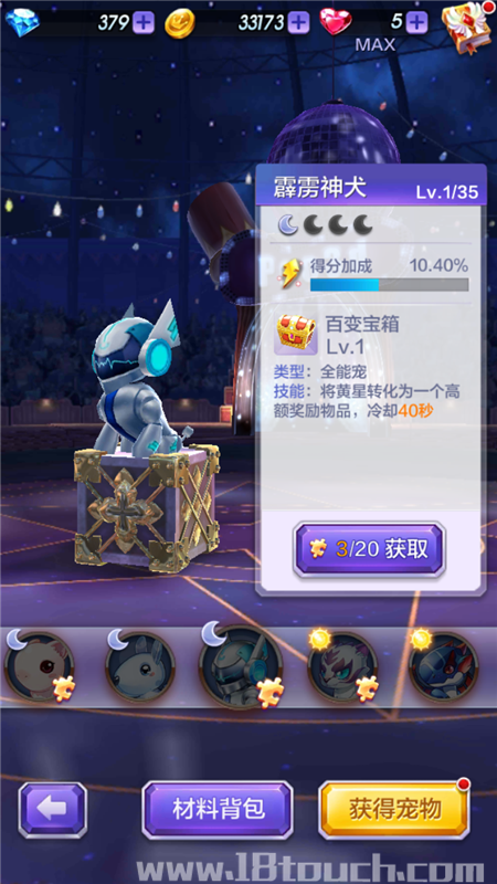 宠物一共分为五种宠物,分别为得分宠、能量宠、全能宠、金币宠、生存宠。