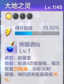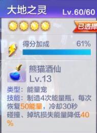 大地之灵初始得分加成13.5%,满级得分加成为61%,也高出了很多,而且在技能里面,每次的能量恢复也由20→50,降低伤害也由16%→40%。