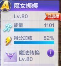 魔女娜娜初始得分加成为30%,满级得分加成为82%,提高了52%