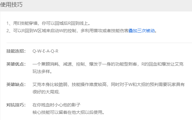 艾克在国服一向有着极高的人气,但是在韩服却一直不温不火,这当然是由两边赛区不同的风格决定的。韩服的打法偏比赛,玩家都比较注重运营,大家的发育速度都比较正常,艾克难以获得超前时间的发育。但是在国服就不一样了,国服热衷于打架,艾克在这种情况下有着极大的发挥空间,能获得超前的发育,而一个发育良好的艾克,在战斗中可以EAQ三环轻松秒杀对手,carry能力极强,是当之无愧的野核英雄。非常值得在国服上分时使用。