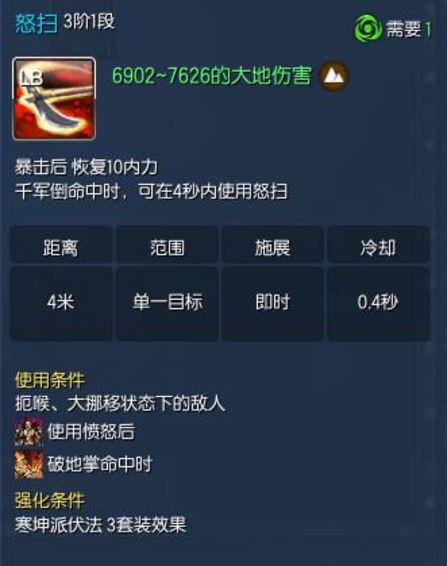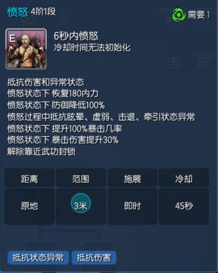 愤怒or不屈 这两个技能看个人爱好,点出愤怒是爆发型,起手一套带走一个脆皮,超级内力回复效果,可以随意挥洒技能。