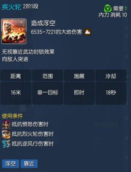 疾火轮 2阶1段 技能点充足最好是点出无视突进封锁,如果技能点不充足可以暂时舍去