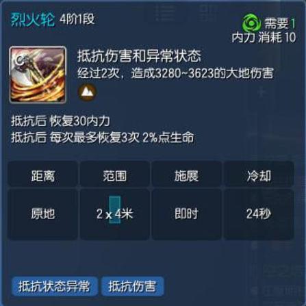 烈火轮 4阶1段 点出抵抗恢复内力,PVP时候每一点内力都可能决定胜负,所以很重要
