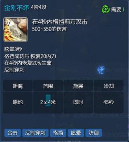 金刚不坏4阶4段 一般用来眩晕连招的衔接,必要时刻可以格挡回血
