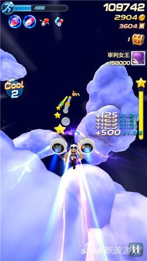 在飞行奖励中,没有障碍物的困扰,也没有掉坑的担忧,可以任性得分。为此我们在收集黄星的时候,需要关注右侧的竖线能量条变化,当快满的时候,就意味着飞行奖励即将到来。