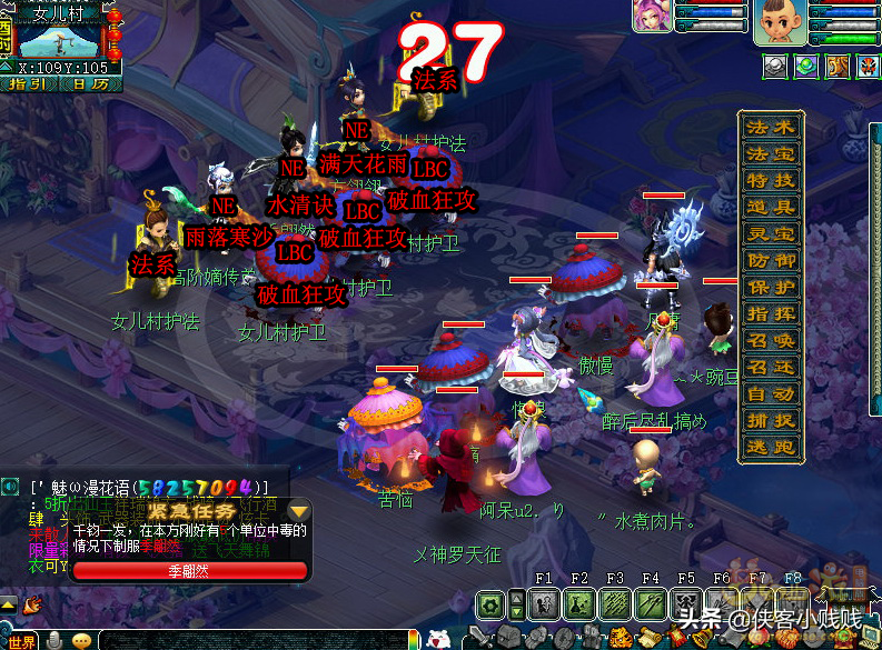 方翎翎 | 固定门派NE,优先对未中毒的玩家使用满天花雨,满天花雨必定中毒 |