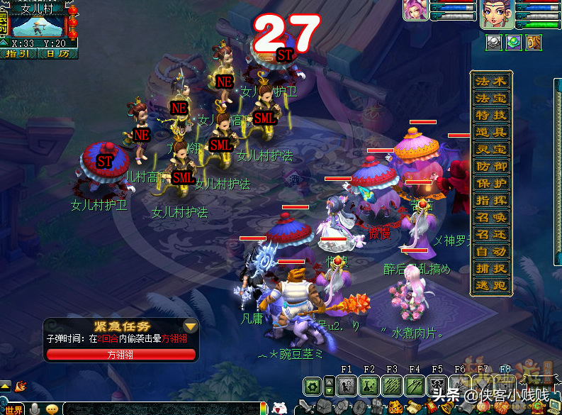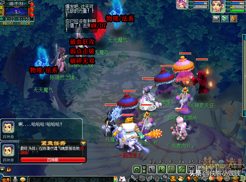 6、明白怪物的行动规则后,其实本场战斗非常简单,只要玩家把黄色蜃气妖和红色蜃气妖MW的特技封印,剩下的怪物是不会玉清诀的,玩家可以把所有怪物全部封上,慢慢打就可以了,队伍封系忙不过来的时候,辅助系和输出系其实可以使用无魂傀儡来进行控制,对面没有七宝玲珑灯。