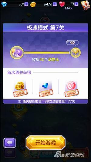 收集40个动物头,本关最低能量382。如果你不能达到最低能量的要求你会很难通关,所以在通关之前要做好准备。