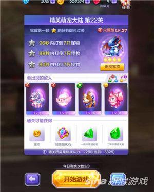 精英萌宠大陆的第22关副本是限时灭宠副本。通关花费的时间越短,那么所获得的通关星数就越高。建议大家在角色的选择上要选择加分能力强的角色。由于本关限时性的通关要求让携带宠的选择上升到一个更为重要的层次上,建议大家选择火属性的高攻宠物为首选携宠。